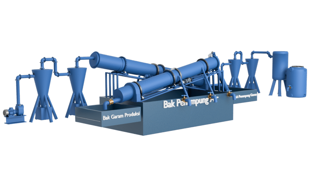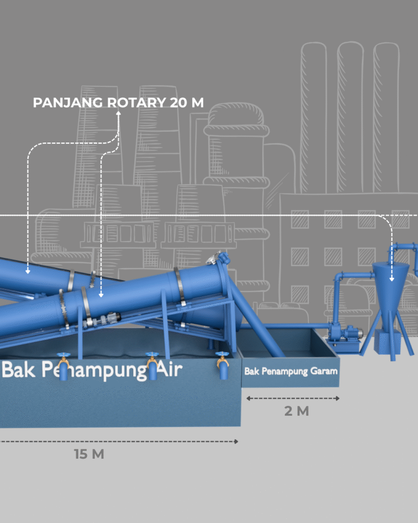 Lalu masuk ke rotary membrane untuk merubah garam yang sudah berubah bentuk menjadi tersuspensi agregat garam dan mineral lain nya tetap di dalam,
