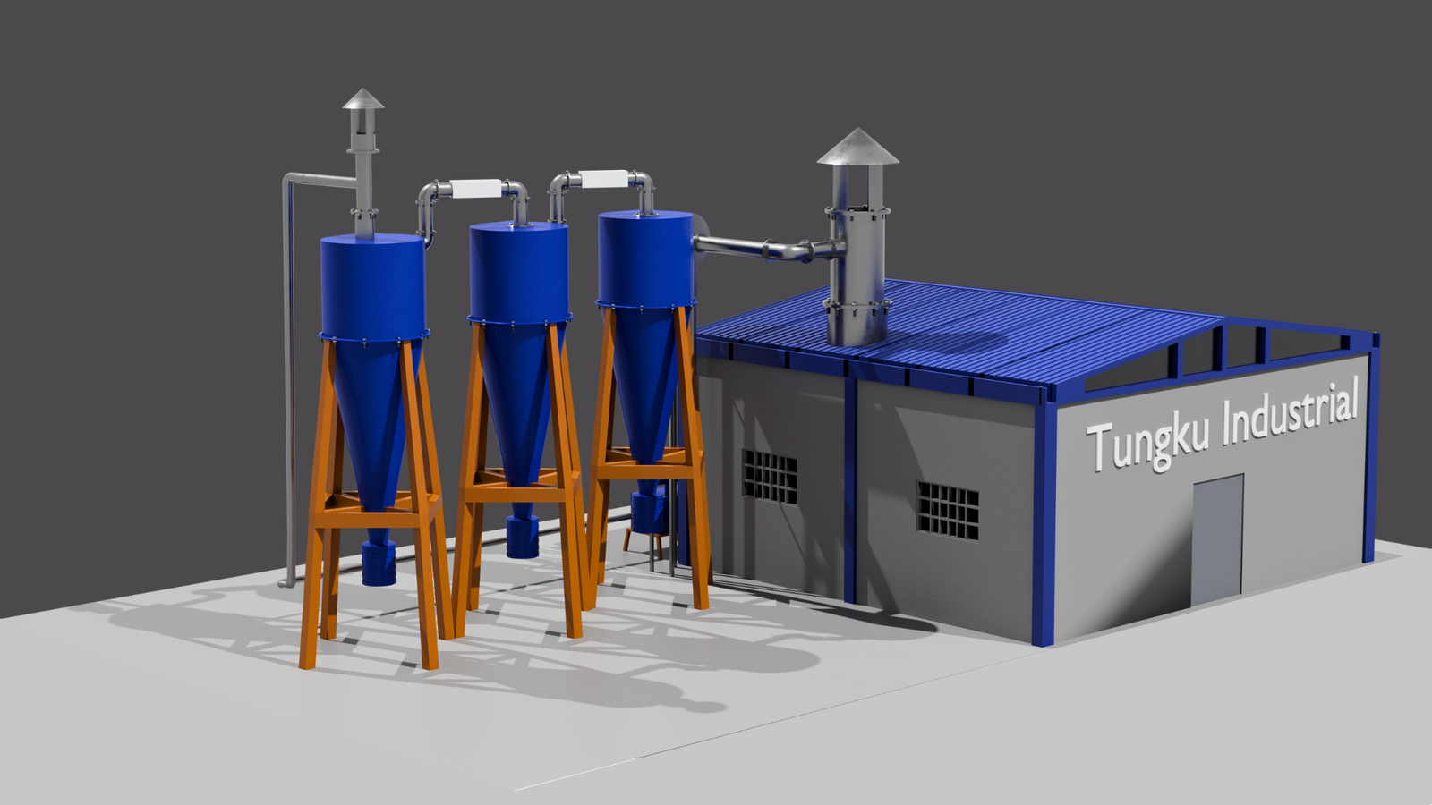 1. Asap yang dihasilkan oleh industri keluar melalui cerobong dan disedot menggunakan Centrifugal Blower menuju Siklon 1.